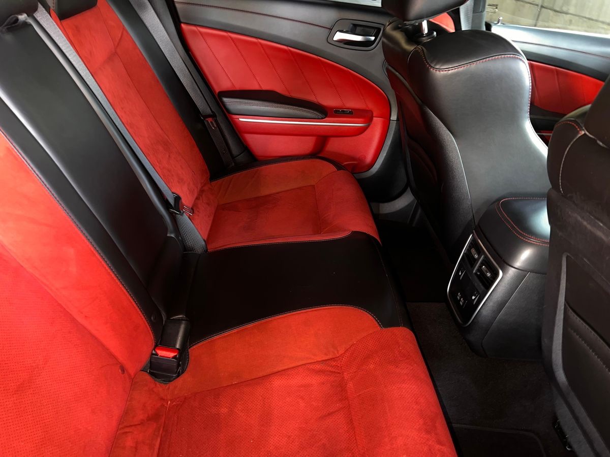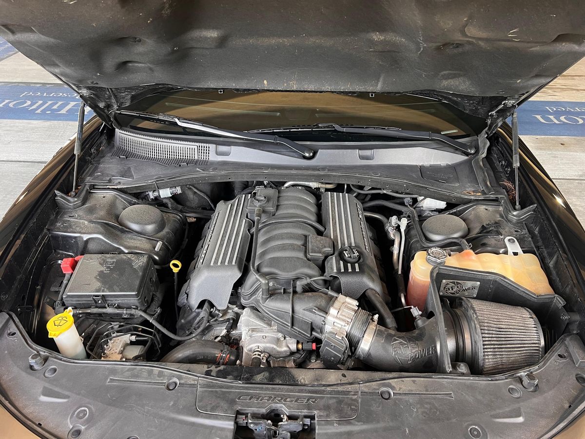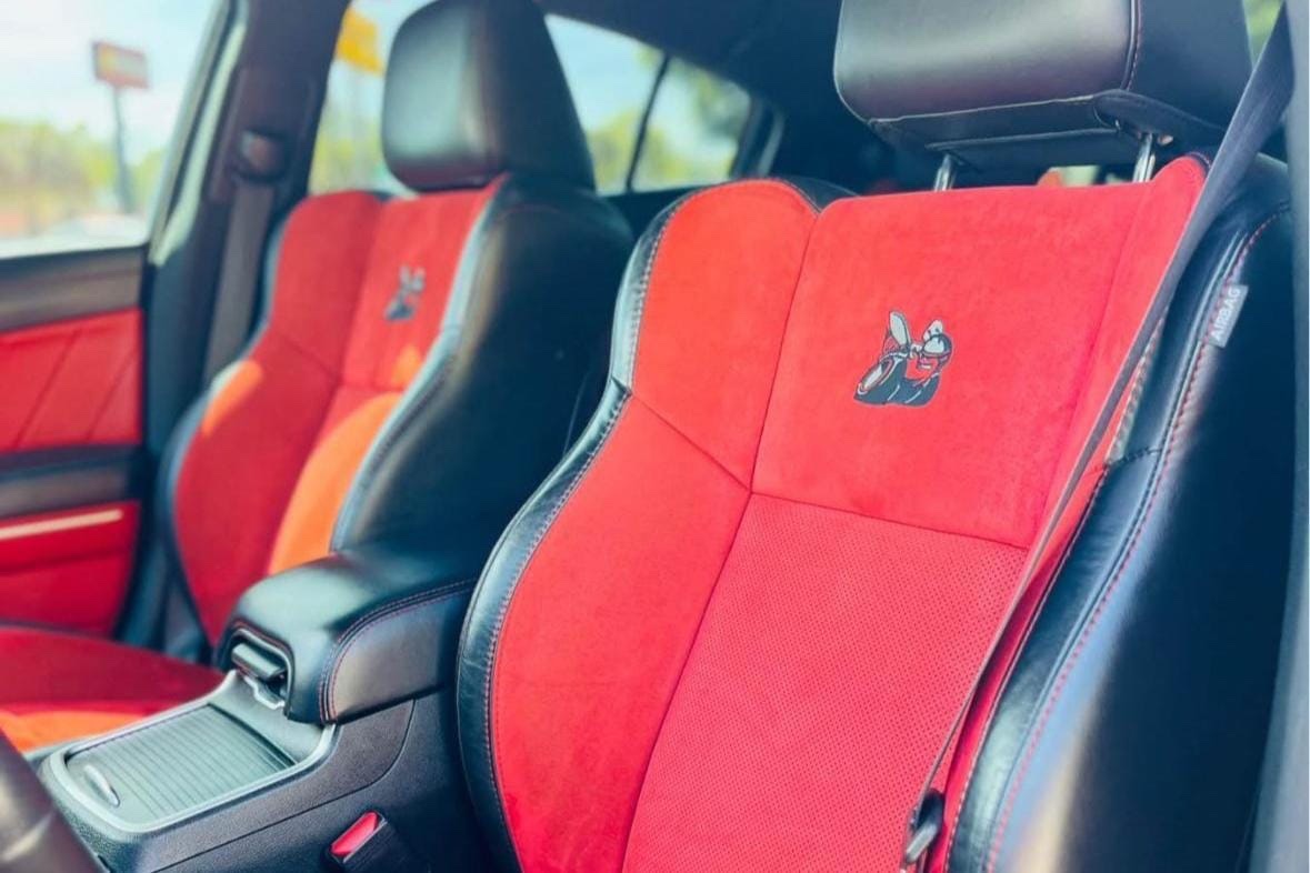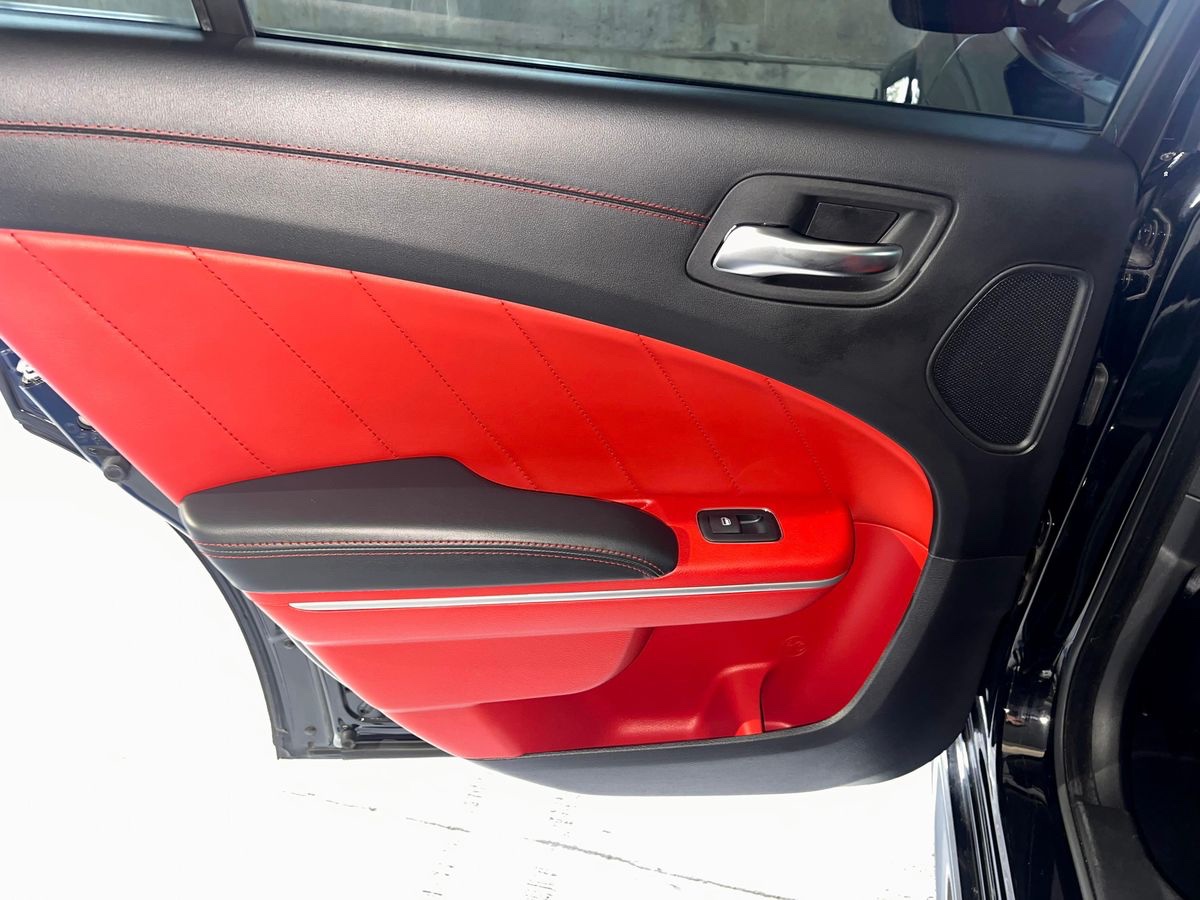 This 2020 Dodge Charger R/T Scat Pack Widebody delivers the signature 6.4-liter Hemi V8 paired with an 8-speed automatic for strong performance and quick shifts. Finished in Pitch Black with a striking Black/Ruby Red interior, it carries Dodge’s aggressive factory widebody stance along with select modifications enhancing its character without compromising reliability.